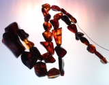 This red amber necklace comes from Mexico.these are all freeform cut shapes. This type of amber is certified authentic by known scientific authorities and is well known to be from the Miocene to Oligocene geological Epochs and is at least 22 million years old! For additional information, please read about MEXICAN AMBER.