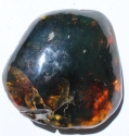 This amber has been fully polished by smoothing the surface and conserving its original shape. The blue green iridescence that Mexican amber possesses is clearly seen throughout this stone!This type of amber makes a very affordable and decorative specimen.