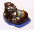 This Mexican Fire Agate was hand carved & polished in our studio. This piece shows a rare blend of violet and green colors. This unique piece is very affordable for its quality. We can drill it for you to be worn as a pendant.. Can be made into a fine jewel & a good investment.