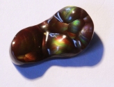 This very bright l Gem Grade Fire agate comes from Mexico. This particular piecewas hand carved and shows beautiful colors, no dead spots, & a nice natural shape. The polish is perfect & has no scratches. Great for setting in rings since it is very hard, and will not scratch. This is exactly what this gem looks like under bright light.. This piece is a QUALITY GEMSTONE trust me you will not be disappointed.