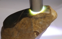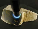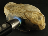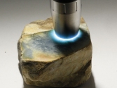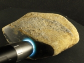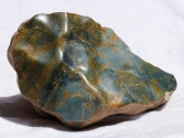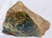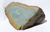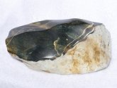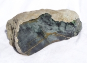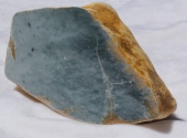This raw piece of Guatemalan Jadeite was opened and polished on one side in order to expose the colors and translucency inside. Fine Olmec blue color with very good translucency as you can see.