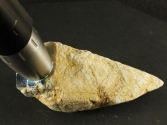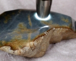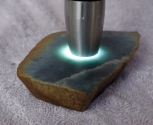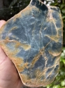 A polished window has been opened to better show the color and translucency of this piece. Very thin skin on this piece and a deep blue color inside.