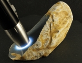This large piece can be cut into jewelry made into a decorative object or carved into a fine sculpture. Only a small window has been opened into this stone. This piece could have a variety of undisclosed colors now hidden by its surface skin.