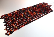 These red amber beads all come from Mexico. They are cut in Rondelle shapes from natural red blue Amber, and do shine blue in the sun! This type of amber is certified authentic by known scientific authorities and is well known to be from the Miocene to Oligocene geological Epochs and is at least 22 million years old! For additional information, please read about MEXICAN AMBER.