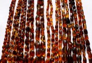 These Natural Red Amber Beads come from Chiapas Mexico. These are all RODELLE shapes that measure from 8 to 10mm in diameter. No fractures presnt great quality material!This type of amber is certified authentic by known scientific authorities and is well known to be from the Miocene to Oligocene geological Epochs and is at least 22 million years old! For additional information, please read about MEXICAN AMBER.