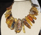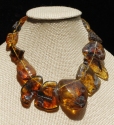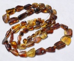 This red amber necklace comes from Mexico.these are all freeform cut shapes. This type of amber is certified authentic by known scientific authorities and is well known to be from the Miocene to Oligocene geological Epochs and is at least 22 million years old! For additional information, please read about MEXICAN AMBER.