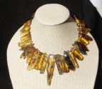 This amber necklace was cut out of carefully selected raw amber pieces. The longer center pieces were carefully selected to match the rest. Only clear material with very few inclusions and no fractures was selected to make this entire necklace. The result is a bright attractive piece! It is set with a sterling silver clasp. We can adjust this for you and make it larger or smaller on request.
