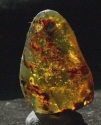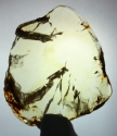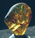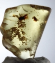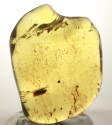 This amber piece originates in Chiapas Mexico. It has excelent clarity, and GLOWS a green color, is polished on only one side, (the dark areas you see are in the back surface) and it has no fractures.