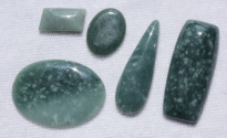 These are cut from beautiful Guatemala “princesa” jadeite. FIVE translucid cabochons measuring assorted sizes were cut from excelent high grade fracture free material. These pieces could make excellent jewelry items.